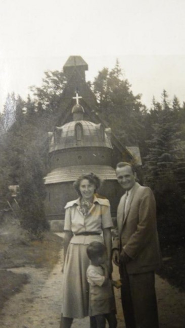 DSC03474.jpg ja z rodzicami przed kościółkiem Vang w 1951r |
