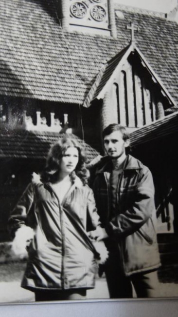 DSC03476.jpg tu ja z Krysią przed kościółkiem Vang w 1972r |