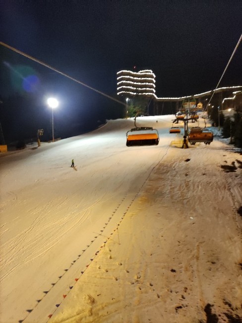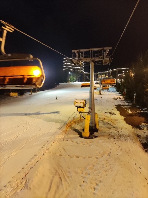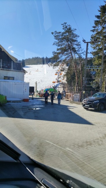 To i ja dołożę kilka zdjęć z Krynicy. Staliśmy na parkingu przy restauracji na Słotwinach. Podobno miało być płatne 50 zł z prądem wodą i zrzutem szarej i kota, ale z racji, że woda zakręcona i nieczystości trzeba było wylewać do toalety nikt nie pobierał opłat. Staliśmy 8 dni podłączeni do prądu. Warunki do jazdy pomimo temperatury bardzo dobre, kolejki umiarkowane, w szczycie max 15 minut.