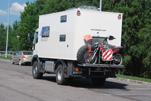 Przedtem po raz ostatni tankujemy. 60 ltr po 25,80 Rb. Odtąd będzie już tylko gorzej. Na stacji spotykamy potężne Iveco Eurocargo. To Włosi jadący na Syberię.