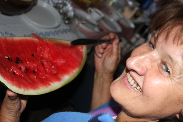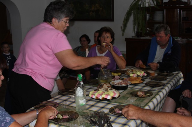 IMG_9917.jpg Pani Irenka ugościła nas własnymi wyrobami: ciasto na piance i mięso w rąbance. Pycha. |