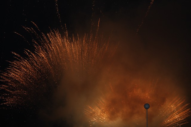 IMG_0348.jpg Bajecznie oświetlony helikopter wystrzeliwał race nad głowami widzów. |