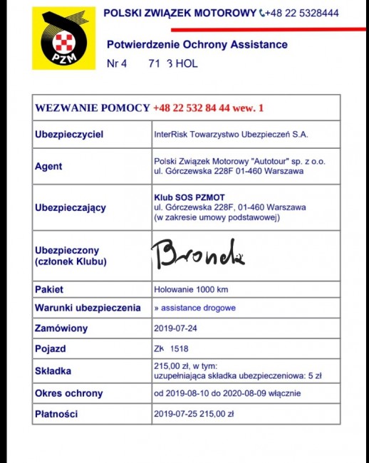 A wszystko tu https://assistance.pzm.pl/