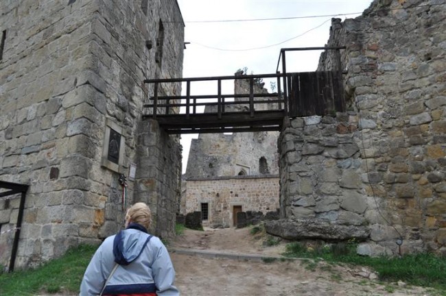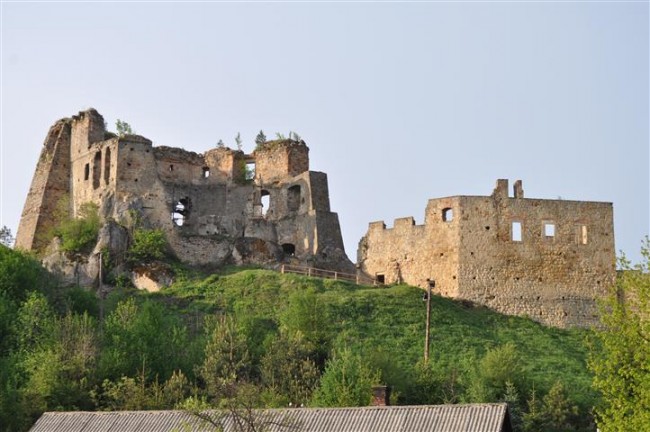 W drodze do Podzamcza, ponownie przejechaliśmy w pobliżu petrochemii i podążyliśmy na drugą stronę drogi do Krosna. Sam zamek w Odrzykoniu jest w stanie dosyć zrujnowanym ale w jednej części znajduje się niewielka salka muzealna. Historia zamku znana jest z literatury. To tutaj działy się zdarzenia opisane później w "Zemście" przez Aleksandra Fredrę. Pisarz przez pewien okres był właścicielem zamku, jako wiano, posag żony. Fredro przeglądając zamkowe archiwum znalazł dokumenty spraw prowadzonych pomiędzy poprzednimi właścicielami budowli.