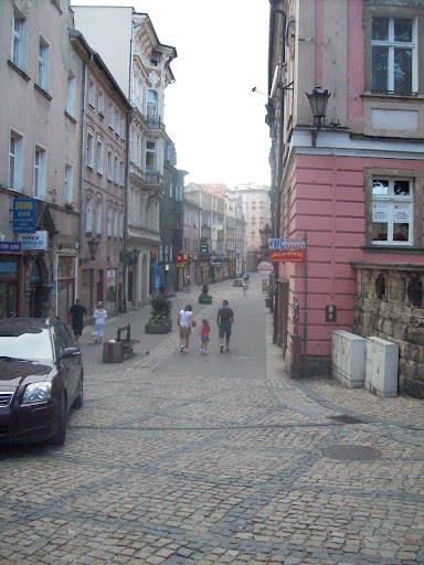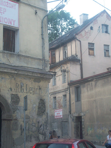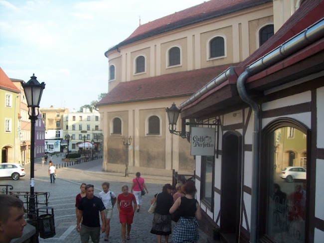 Spacerek po dolnym mieście , tam gdzie w czasie wielkiej powodzi kilka lat temu woda zabierała wszystko co się dało . Wyraźnie widać do którego miejsca woda podeszła na ścianie kościoła , linia pod oknami . Obok kościoła jest wyremontowana kamienica z wmurowaną wilczycą na wysokości okien pierwszego piętra . Legenda głosiła , że jeśli nastanie taki czas gdy ten właśnie zwierz napije się wody , to będzie zwyczajnie koniec świata …. Legenda się pomyliła …w czasie powodzi pysk kamiennej wilczycy zanurzył się w rozlewisku i końca świata nie było …. może tylko oprócz wielu okolicznych domów , które do dziś straszą i są sporym zagrożeniem dla ludzi … dla nich koniec nadchodzi z każdym dniem .