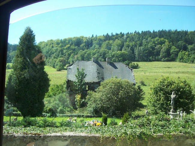 Po doznaniach duchowych , połączonych z upalną niedzielą dochodzimy do wniosku , że na dziś koniec zwiedzania , szukamy fajnej mety i ważne by naprawdę była fajna … drogą 100-tu zakrętów kierujemy się w okolice górki Szczeliniec ale tam wszędzie park narodowy . Wiadomo o co chodzi , dzikusy mają przerąbane … licząc na to , że w niedzielę nikomu nie będzie się chciało biegać po lasach , lekutko ryzykuję i wbijam auto tam gdzie raczej rzadko ktokolwiek wjeżdża … nie będę podawał namiarów by nikogo nie prowokować do tak niegodnego zachowania … chęć przeżycia czegoś niespotykanego była większa .Nawet się nie zdziwiliśmy jak jedyną widoczną cywilizacją była sama iglica kościółka w wiosce o nazwie …Pasterka … Długo nie szukaliśmy , trochę lasem , polem , lasem i to było to czego szukaliśmy .