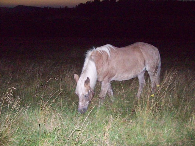 Cały czas rozglądaliśmy się bo zdawaliśmy sobie sprawę z „niezręczności „ sytuacji … najpierw odwiedził nas student z pieskiem ze wsi , obiecywał , że nikomu nie powie o nas … potem przeleciał nad nami mały samolot ( już w wyobraźni słyszałem jak przez radio melduje co zobaczył ) . Siedzimy i komuś już się zdaje , że na końcu pola ktoś nas obserwuje przez lornetkę … okazało się , że to koń na spacerku ze stadem owiec ( bez jakiegokolwiek opiekuna ludzkiego ) ….. zrobiło się ciemno , cicho , na niebie widzieliśmy komplet gwiazd .