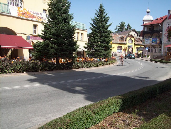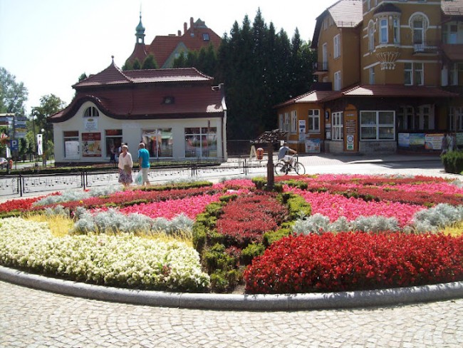 Klimacik podobny do poprzednich zdrojów ale tu jakby więcej dzieciarni , średnia zaniżona w stosunku do innych kurortów …. Ładny park , fontanny ( jedna podobno w nocy wariuje na kolorowo) , wielkie parkowe szachy .