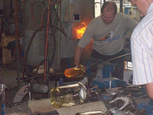 Huta Violetta …. Sporo by opowiadać , na bank bym nie chciał być w życiu nikim tam oprócz prezesa . Praca przy piecu to jakieś piekło , pracownicy wykonują tysiące tych samych ruchów w określonej kolejności , temperatura przekracza wszystkie przyzwoite normy , hałas podobno nie ale trudno w to uwierzyć … gdyby komuś było jeszcze za cicho to sieczka z RMF FM cały czas nadaje i to nie cicho . Tu nie ma strojów ochronnych , każdy ma na sobie co lubi a niektórzy nie mają nawet skarpetek …kto by pomyślał , iskry po podłodze tańczą cały czas. Wycieczki obserwujące pracę wytrzymują kilka minut nim pot spływa po plecach….. Tu odlewamy ręcznie a tu automat klepie szklanki , pani okiem sokoła wychwytuje wady i do kosza rozbija niby ładny produkt …nic się nie marnuje , szklanka to nic takiego ….
