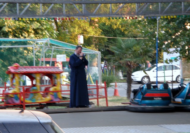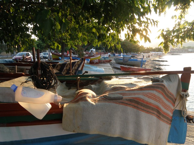 Wzdłuż lewego brzegu Sithoni, jedziemy w kierunku Stavros. Musimy pokonać krętą, górską drogę i obok miejscowości Olimpiada w promieniach zachodzącego słońca wreszcie docieramy na miejsce. Miasteczko Stavros obfituje w wiele sklepów z pamiątkami, moja załoga rzuciła się w wir zakupów, ja wolałem poszwendać się po porcie i obserwować pracę rybaków przy starych drewnianych łodziach. W wesołym miasteczku zafrapował mnie pop, filmujący swoje dzieci, jeżdżące samochodzikami. W pierwszym momencie trochę mnie śmieszyło, z jakim zapałem, oraz poświęceniem biegał za swoją gromadką. Chwilę potem uznałem, za normalne jego zachowanie, przecież pop to nie ksiądz.
