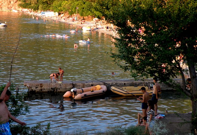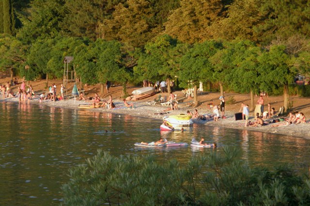 Przy wsiadaniu do samochodu, starszy mężczyzna pyta nas, gdzie mieszkamy w Polsce. Okazało się, że w młodości pracował kilka miesięcy w Łodzi i ma sentyment do Polski i Polaków. Korzystając z okazji pytamy o najbliższy camping, kazał nam jechać na południe, wzdłuż lewego brzegu jeziora i po kilkunastu kilometrach trafimy na camping Gradiste.