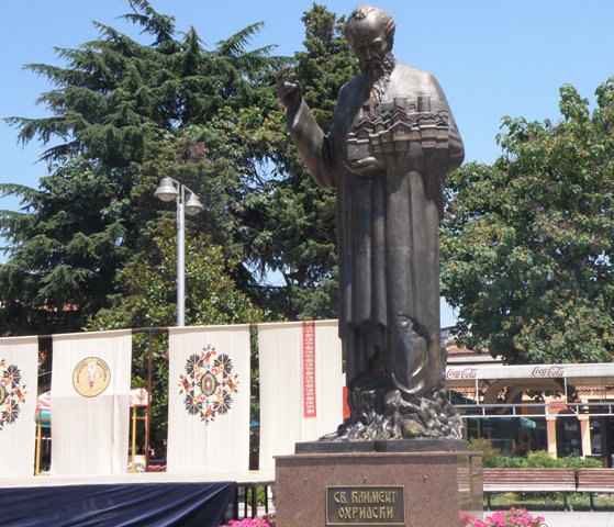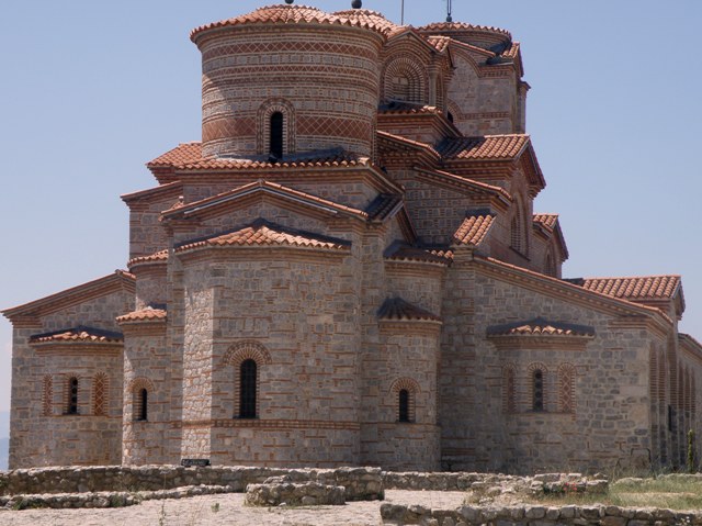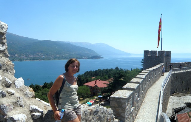 Idziemy w kierunku monastyru św. Zofii, po lewej stronie widok jeziora Ohryd wynagradza nam trudy wędrówki pod górę. Wejście do monastyru jest bezpłatne, ale twierdzę Samuela można zwiedzać płacąc 30 din/os. Schodząc do parkingu wchodzimy do restauracji na obiad. Kelner poleca nam musakę, danie macedońskie, zapiekane ziemniaki z mięsem, serem i oliwą. Za obfity i smaczny obiad dla czterech osób zapłaciliśmy 13E.