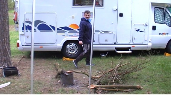 Wracam do naszego obozu / miejsce 046 http://goo.gl/maps/yLJeg / a ci jak siedzieli tak siedzą , drwale jak rano zaczęli ciąć drzewa tak tną dalej … drugi maja , święto a w lesie nad jeziorem hałas jak w fabryce desek i zapałek … jeszcze mała zupka z wkładką i postanawiamy się przenieść . Decydujemy się na sprawdzenie miejscówki nad Wisłą pod Toruniem .
