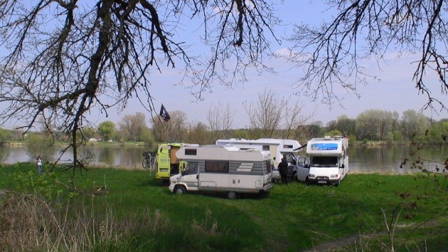 59.jpg nie ma promu ale jest miejscówka , zostajemy po zachodniej stronie rzeki a Ewcia przybywa mniejszym ekosmakowym kamperem ... |