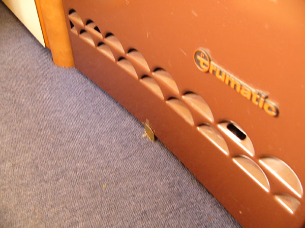 @ndrzej rozwiązał to prosto i skutecznie. Przykręcił do podłogi w odpowiednim miejscu blaszkę wygiętą pod kątem prostym i to właśnie ta blaszka tak silnie dociska obudowę.