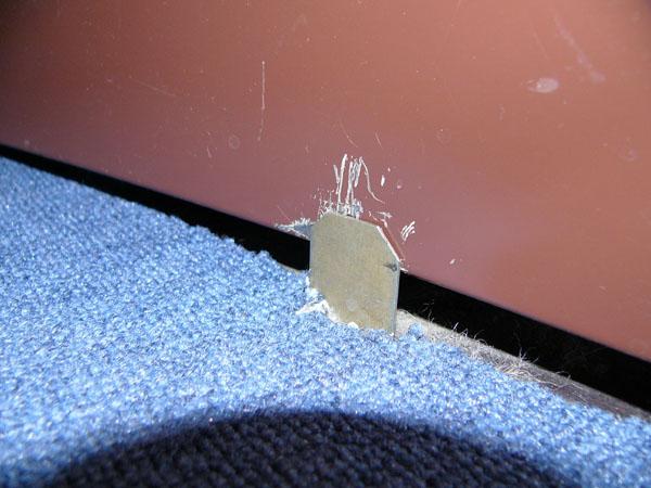 Poziomej części blaszki z wkrętami nie widać bo ukryta jest pod wykładziną.