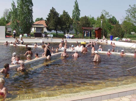 Miejscowość jest połozona w odległości 25 km od Hajduszoboszlo po drodze nr 4 w kierunku na Budapeszt. Zaletą jest basen termalny na terenie campingu z "babelkami" czynny od 7 do 21 a właściwie całą dobę . Woda jest znieniana codziennie nad ranem. Całkowity koszt postoju campera dla dwóch osób z przyłączem elektrycznym, wejściem na wszystkie baseny wynosi około 4500 forint(uwaga energia elektryczna rozliczana jest według wskazań licznika) . Najblizszy sklep spozywczy w odległości 50 m od bramy wjazdowej campingu (w prawo zaraz za torami). Do centrum miasta (około 1 km) Restauracja hotelowa serwuje smaczne obiady w cenie od 900 forint ale we wczesnych godzinach prawie w południe. Swietne warunki dla osób szukajacych spokojnego miejsca możliwośc połowu ryb na campingu ze stawu. Brak komarów w maju i czerwcu. Istnieje możliwość zamówienia kuracji np 7 dniowa około 25000 forint. Patrz strona internetowa.