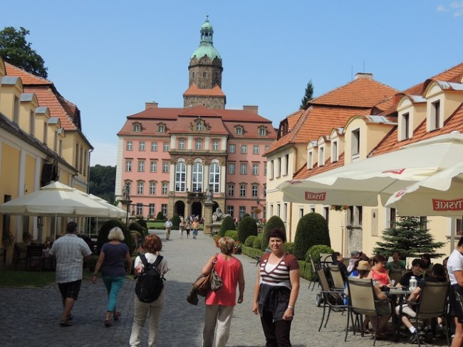 zwiedziliśmy Książ.Czuliśmy oddech księżnej Daisy.I o mało co schodząc do podziemi nie potknęliśmy sie o jej perły. Zamek bardzo ładny ,ładnie utrzymany,Jedyny mankament to to ,iż wiele pomieszczeń jest pustych ,brak w nich jakichkolwiek rekwizytów. Na zwiedzanie z przewodnikiem trzeba czekać około godziny.Samemu można też zwiedzać kosztuje to 5 zł mniej,ale niedostępnych jest kilka miejsc. Warto poczekać. Trafiliśmy akurat na zlot Harleyowców .Maszyny piękne stare młode ,do wyboru. Opisy zamieszczę do fotek. Wyjeżdżając widzieliśmy jak szykowano się do niedzielnej walki czołgów . Ponieważ godzina nie była zbyt późna ruszamy na Czeskie skalne miasto do Teplic.