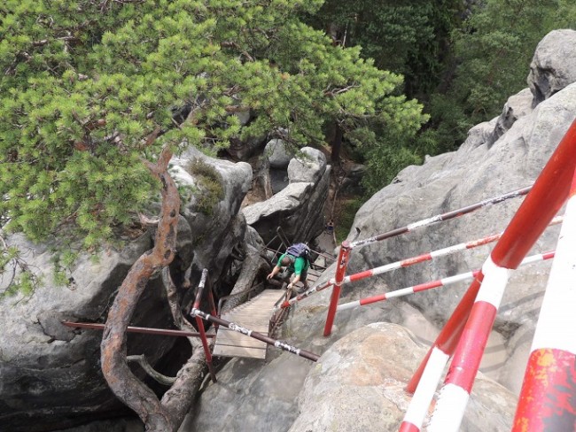 W Teplicach stajemy na parkingu za 50 koron (można tam przenocować bez dodatkowych opłat) Kupujemy bilety i maszerujemy pod górę. Pod nosem sobie marudzę że Sowa miała być ostatnia. Przecież tam nic nie dają ,po co tam idę??? Dochodzimy do pierwszej bramy ,zaczynają się skały . Trochę większe niż te w Polsce na Szczelińcu .Widoki wspaniałe kilku śmiałków wspina się na skałkach.Od czasu do czasu któryś spada, dobrze że mają zabezpieczenia.Zwiedzamy tylko tą część Teplicką. Wychodzimy jemy obado kolację (nie smaczne było,ale zgłodu to wiele można) proponuję nocleg na parkingu. Zostaję przegłosowany. Wracamy do Polski.