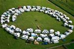 Na marginesie - nawet dysponując ogromną ilością miejsca trzeba o ewakuacji pamiętać i byc konsekwentnym. Zachwalane przez Adama ustawienie kamperów po okregu również nie zapewniało bezpiecznej ewakuacji. Wystarczy popatrzeć na zdjęcie.