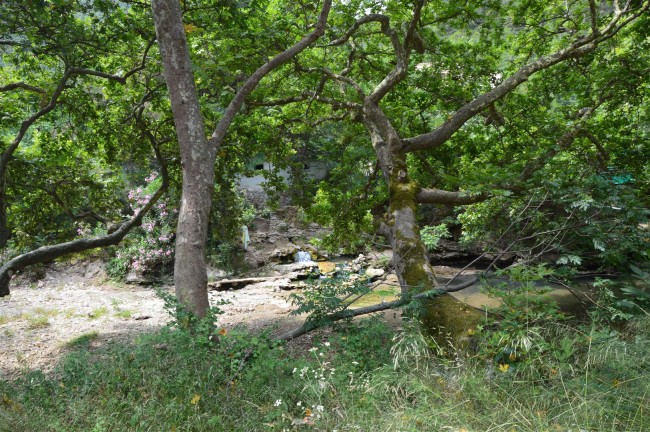 Witam ponownie,spróbuję uzupełnić opis zdjęciami miejsca,które opisywałem już wczaśniej.Koordynaty wyżej.Przebiega tam stara droga z Salonik do Turcji,niezbyt uczęszczana bo powyżej jest autostrada.Z niej zjeżdża się dobrą asfaltową drogą do uzdrowiska.Na wysokości zjazdu można biwakować nad morzem,jest pięknie ale bezpiecznie byłoby w kilka aut.Jeszcze wcześniej,przed zjazdem są piękne plaże ale zajęte przez nagich mężczyzn w parach.Dziwne miejsce.Jeszcze wcześniej od zjazdu ok.3 może 4 km jest plaża ,na którą zjeżdżają miejscowi,mają tam kilka namiotó/domków i siedzą cały sezon.Warto się tam przytulić bo dają poczucie bezpieczeństwa.Nie ma tam wody i knajp i dlatego trzeba podjechać kilka km do miasteczka.Chałas z drogi absolutnie nie słyszalny - to odpowiedź na Twoje pytanie Jarku.Da się wjechać do tych źródeł siarkowych ,chwile się pomoczyć (długo się nie da),potem ochłodzić w strumyku,znowu pomoczyć w wymurowanych z kamieni basenikach i znowu ochłodzić...Nie da się tam być bardzo długo.Pod platanami piękny cień i inny klimat.Atmosfera tajemniczości a w niektórych z budynków mieszkają dzicy lokatorzy.W połączeniu ze stadem psów i brakiem perspektywy jaką daje plaża nie wydaje się to być miejsce na nocleg.Nie znalazłem tam wody słodkiej do mycia,chyba,że ze strumienia.Za ośrodkiem jest długa,szeroka na auto trasa wycieczkowa.Też polecam.I polecam też to czego jeszcze nie zauważyłem,miejsce z potencjałem.