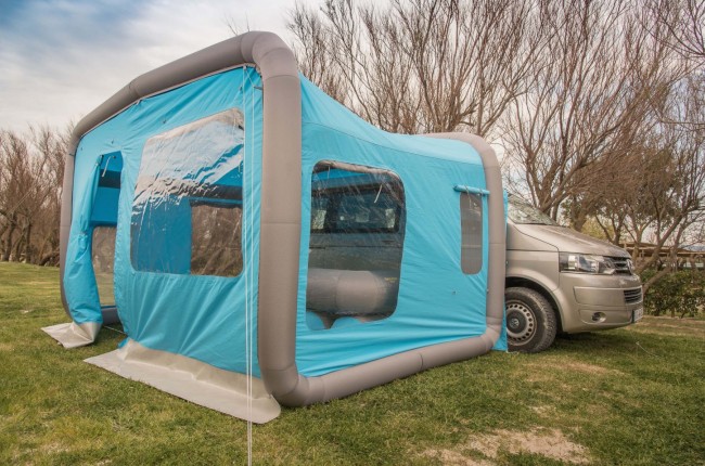 Szczerze mówiąc, to chyba szybciej się rozstawi te 3 rurki ze stelaża niż napompuje ten namiot...
