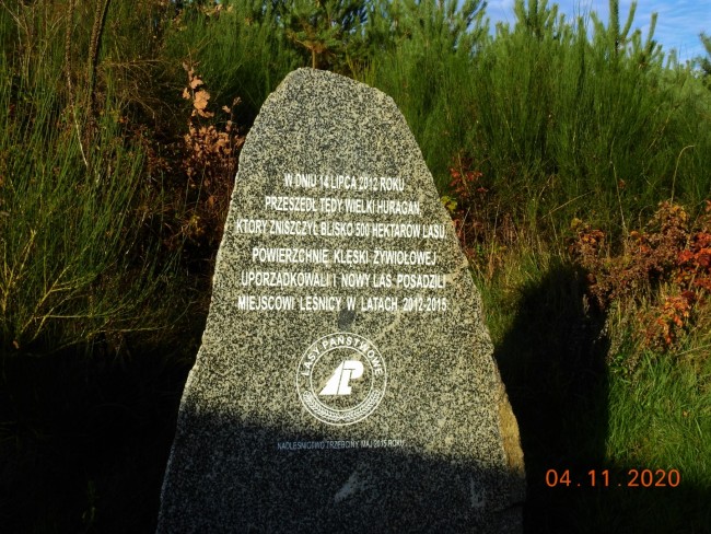 Wjechaliśmy na drogę od strony Warlubie na Tucholę,pierwszy przystanek przy wieży widokowej na miejsce przejścia trąby powietrznej w 2017r. Widok swego rodzaju chaosu w lesie i braku drzew robi wrażenie,w dalszym włóczeniu się (dobre określenie ) po bocznych dróżkach dość często spotykaliśmy takie miejsca po nawałnicach.