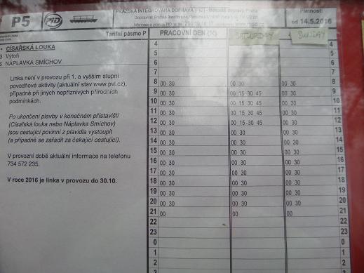 Rozkład jazdy już się zdeaktualizował jednakże nie to jest najistotniejsze. Otóż proszę brać pod uwagę, iż tramwaj wodny zabiera ok. 10-14 osób, a stacja Vytoń to stacja pośrednia. Jeśli mamy pecha to może się okazać, że ze stacji Smichov wszyscy płyną na Cisarską i ... nikt z Vytoń już nie wsiądzie.