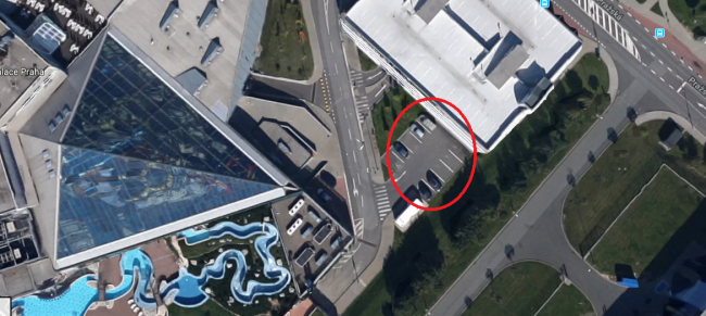 Poza tym jak by ktoś przy okazji wybierał się do Aquapalace Praga, to polecam parking tuż obok. My przyjechaliśmy wieczorem, było pusto, przespaliśmy się przez nikogo nie niepokojeni. Rano zakupy w pobliskim sklepie i na basen Obok jest parking wielopoziomowy z ograniczoną wysokością, więc wjazd kamperów jest niemożliwy.