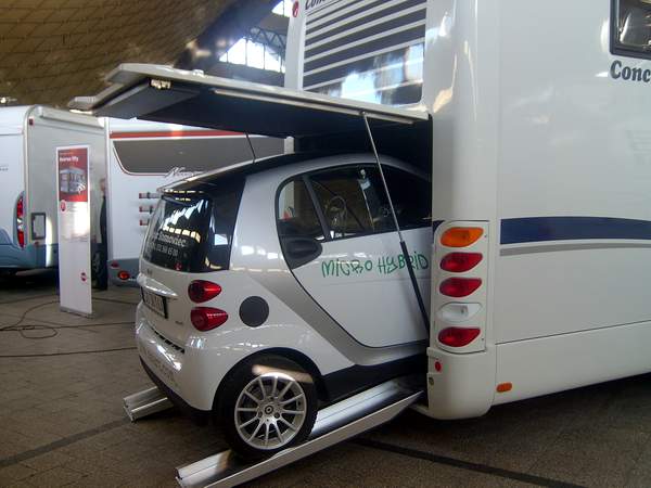 | My dzisiaj opuściliśmy Targi ok. 13,30 i jedziemy do Włoch. Zabawa na targach była przednia - zameldowali się m. in. Maluch, SAS, Arek, Pawcio, jacek Stec, Medard, Kimar, Louis cyfer, Czarna Mamba, Eikowie i inni . Zakupy zrobiłem ogromne, naprawiłem Trumę i zrobiono mi przegląd instalacji gazowej. Na nas największe wrażenkie zrobił kamper firmy Concorde z Garażem a w nim samochodzik Smart - rewelacja, chociaż jak na Europę to trochę za duży. |