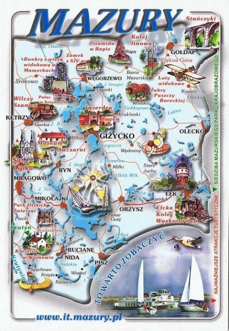 A jak ktoś chcę drążyć ten temat to trafiła mi się widokówka z mapką samych Mazur .