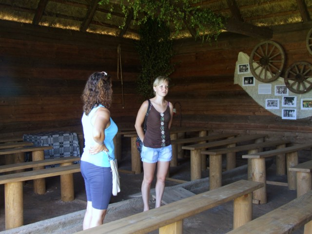 Dalej wyruszamy do Sejn po drodze zatrzymując się w zajeździe przy skansenie jemy tam obiad (polecamy kartacze) i zwiedzamy skansen po którym również oprowadza nas stażystka z Litwy.