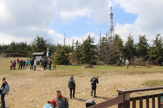 Rano wita nas słoneczna pogoda. Nie tracimy czasu i ruszamy do Szczyrku. Jedziemy przez Ustroń i Wisłę. Zatrzymujemy się na przełęczy salmopolskiej i zostawiamy rowery przypięte do słupka. Kamperem zjeżdżamy do Szczyrku, gdzie zatrzymujemy się na dużym parkingu naprzeciwko stacji kolejki linowej. Szlakiem biegnącym pod kolejką wspinamy się na Skrzyczne, gdzie robimy krótki odpoczynek w schronisku. Dobra pogoda przyciągnęła na szczyt tłumy ludzi, więc czym prędzej ruszamy dalej na szlak. Przez Małe Skrzyczne, Malinowską Skałę i Malinów docieramy do przełęczy skąd rowerami wracamy do kampera. Wieczorem przejeżdżamy do Międzybrodzia Żywieckiego na parking przy elektrowni szczytowo-pompowej Porąbka-Żar. Parking położony jest nad samym jeziorem. Tablica informuje, że jest to parking dla samochodów do elektrowni, a ponieważ jutro mamy w planie zwiedzanie elektrowni więc jesteśmy do elektrowni :) Obok przy polu namiotowym znajduje się punkt do wyprowadzenia kota.
