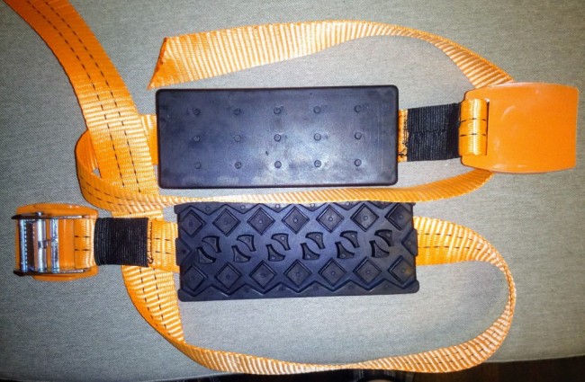 Tam nawet część plastikowa była nabijana kolcami a połączenie z taśmą było z ogniw łańcucha i .... wytrzymało to do pierwszego użycia i to w osobówce |