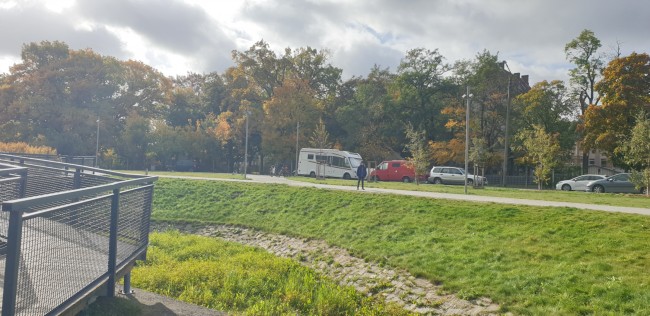 51.099590,17.056851 Parking bezpłatny, kosze na śmieci i toalety żeby pozbyć się kota. Obok park i ścieżki rowerowe. Super plac zabaw dla dzieci.