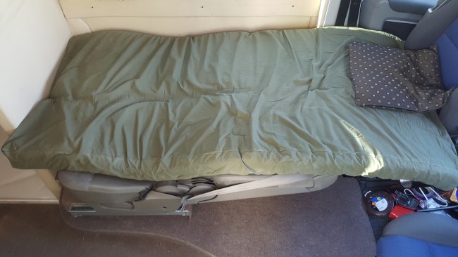 | Fotele są od espace IV i nie da się ich bardziej rozłożyć. Nie przewiduję na nich spać, bardziej będą służyły do jazdy jak będziemy gdzieś jechać w czwórkę, są wygodne i mają już zamontowane pasy, także odpada kombinowanie z ławeczką. A co do wyrównania to można jakiś koc włożyć i jedną nockę przespać. |