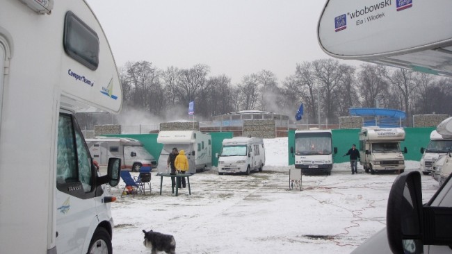 Łącznie zaparkowało w pobliżu Uniejowskich Termali (około 100m od wejścia) 25 samochodów mieszkalnych i kilka osobówek. Z piątku na sobotę nocowało 16 samochodów, reszta dotarła w sobotę. Najmniej liczna załoga kamperem to 1 osoba, najliczniejsza to 4 osoby. Zużyliśmy 304 kWh energii elektrycznej. Podłączone były 23 samochody. Miejsce postoju pozostawiliśmy w stanie czystym i schludnym. Przy uzgadnianiu zlotu z Dyrekcją Termali zapomnieliśmy o podstawieniu śmietnika. W związku z tym śmieci w większości zabrali zlotowicze, pozostał jeden plastykowy worek który zostanie zabrany przez zakład oczyszczania. Za prąd zebrane zostały pieniądze w systemie "co łaska" w kwotach od 10 do 40 zł. Razem uczyniło to sumę 445zł. Ze względu na to, że nikt nie wiedział ile kosztuje 1 kWh energii elektrycznej, przyjęliśmy 1 zł za 1 kWh. W kasie Termali zostawiłem 300 zł co powinno pokryć nasze zużycie prądu (nie wiem jak dokładny jest nasz licznik prądu). Jeśli coś zostanie po wyliczeniu pomyślałem, że za odśnieżenie boiska i zabranie 1 szt worka ze śmieciami należy się. Pozostało 145 złotych które mają być przeznaczone na dołożenie do zakupu alkomatu.