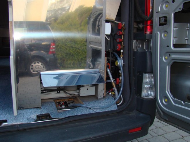 Z chłodzeniem lodówki nie mam problemów za kołem zapasowym jest duża kratka zasysająca dlatego brak tapicerki. Będe to jeszcze zmieniał bo za dużo ciepła idzie do wewnątrz /czuje ciepły blat i rura też oddaje.Wiatraczki jeszcze mi sie na maxa nie włączyły chyba że sam przed snem weżmę na jakiś czas na manual. O aku pokładowe sie nie obawiam raz jak byłem w Gdańsku na rybach przy dusznej nocy to went dachowy chodził całą noc i minimalny pobór. Na zdjęciu ta wygięta blach wchodzi do wewnątrz drzwi i znajduje się nad kratka po ich zamknieciu.