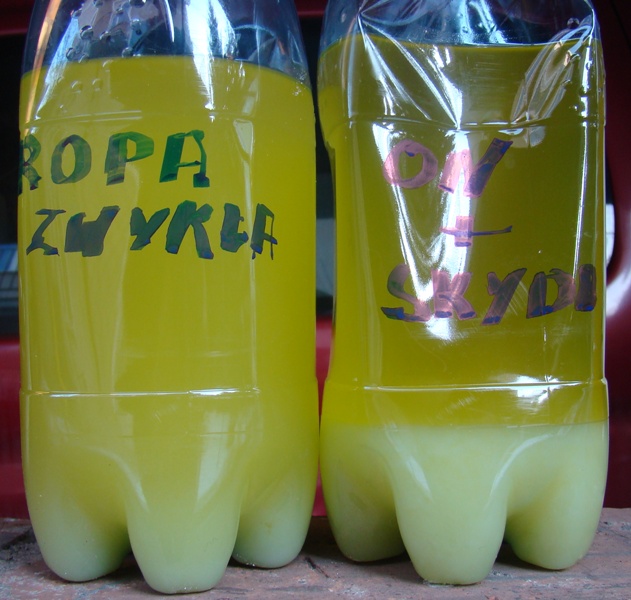 Męczę temat, ale gdzie powinno być łykanie paliwa. Moim zdaniem w tej górnej warstwie po dodaniu skydd. Tu jest kryształ. A na dole to chyba ta wredna wytrącona parafina.