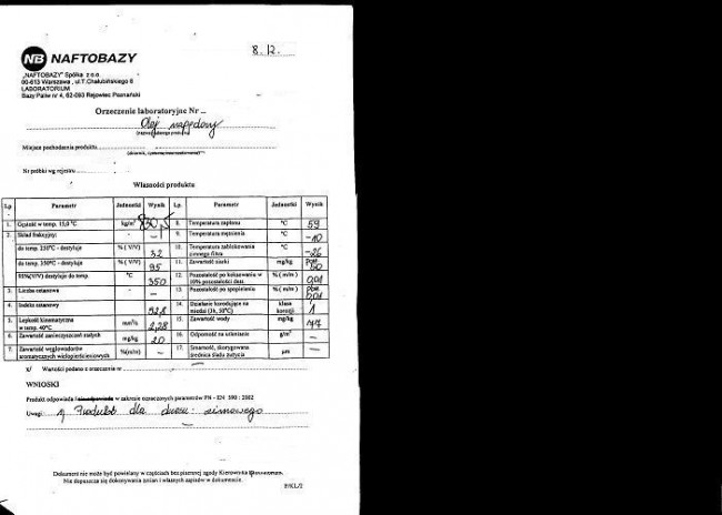 w celu dalszych badań nad tym tematem załączam skany swiadectw jakości dołączane do każdej cysterny wychodzącej od dystrybutora paliw