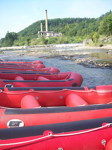 Rano jedziemy do Bardo ale dziś będziemy płynąć ,,, tak tak , dziś ponton i mały spływ . Na placu przy bazie można też spokojnie przenocować , spokojnie , mimo , że prawie w miasteczku ( n 50 20 14 83 E 16 44 11 65 ) . Organizacja wydaje się perfekcyjna , kapoki dla każdego , mocny sprzęt bez ściem , autokar na czas by przetransportować wszystkich w góre rzeki … mały instruktarz jak płynąć , z której strony omijać przeszkody i kilka pontonów startuje , my jako pierwsi .