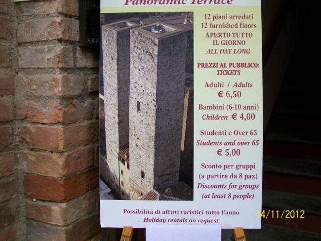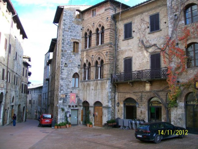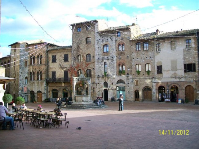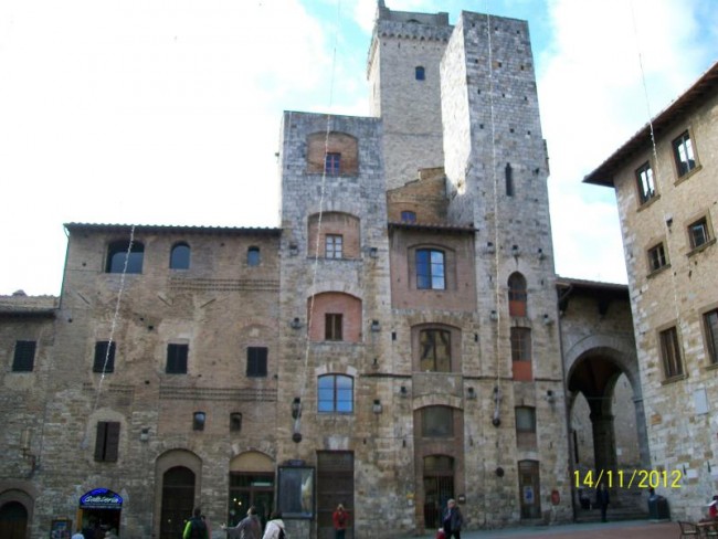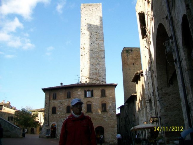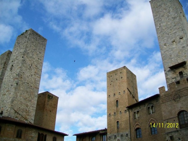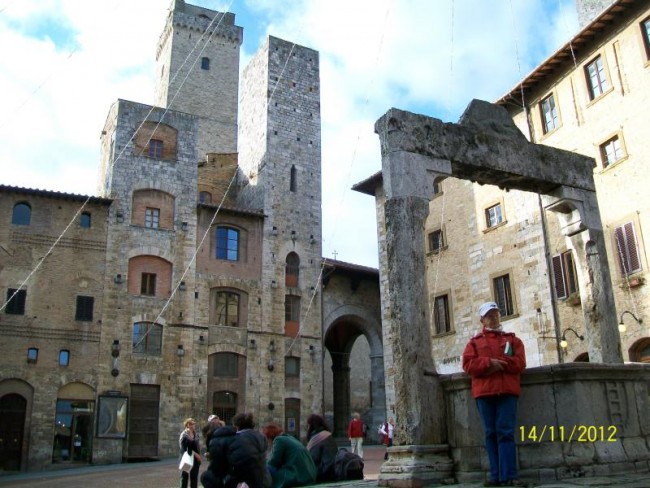 San Gimignano,miasto pod unesco.Miasto domow wiez.Slynelo z produkcji materialu ktory musial byc suszony pod dachem i w wiezach rozwieszano material do suszenia,aby kolor nie wyblakl.Wulkanizator sie nie trafia bo jak jest to nie ma "c" opon.Ale juz nam wowia gdzie znajdzeiemy.Musimy kupic chociaz 2 opony.