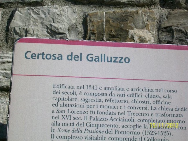 Mamy kierunek juz na pobliska Florencje,ktora nie byla w planie.W miejscowosci Galuzzo,jest duzy wulkanizator.2 opony dobre,uzywane po targu 45 euro. Musimy je miec na razie w Kamperze.zwiedzamy tu jeszcze klasztor z 16 celami z zewnatrz.Mamy dobra godzine ale nie wpuszczaja nas.