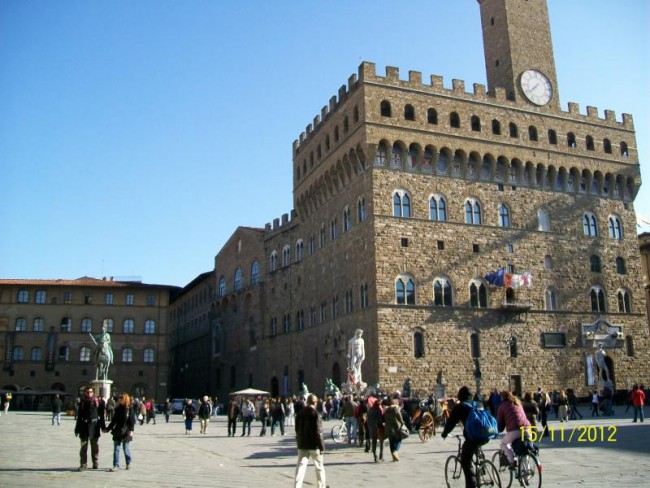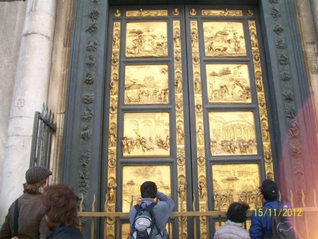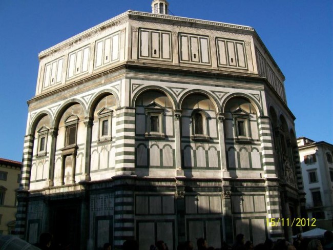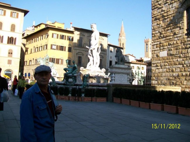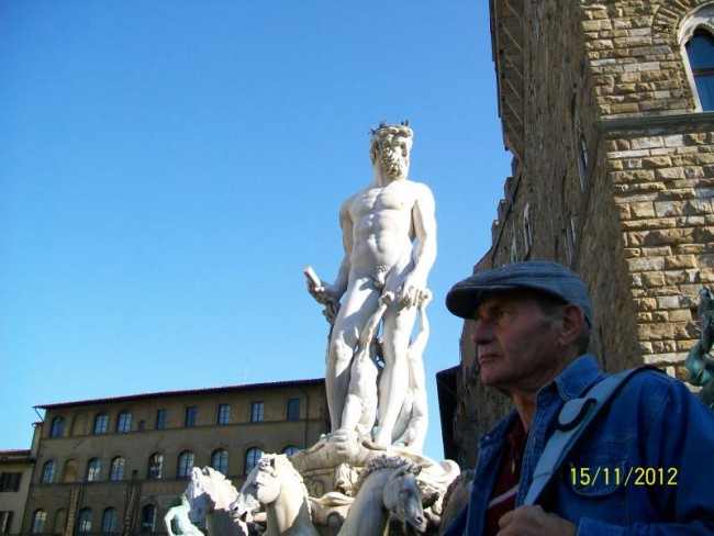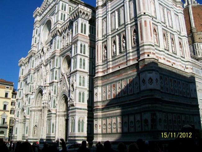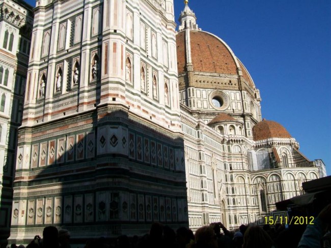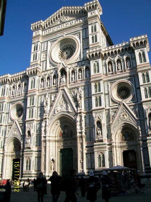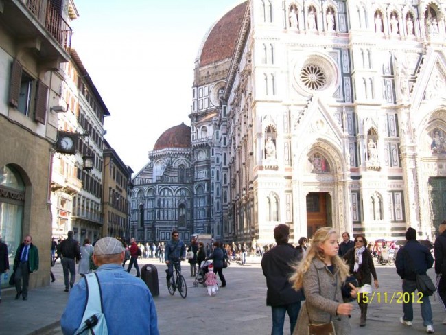 Zbiegamy ulicami na dol.Przechodzimy most i jestesmy w centrum.Duzo jest pilicjantek/pan/.Pilnuja bo pod katedra duzo cyganek.Pamietam z przed 30 lat jak wolno bylo moczyc nogi w fontannie na placu Signori.Poznaje,wszystko ,nawet przypominaja mi sie drzwi w baptysterium.Dlaczego nie pamietam najpiekniejszej dla mnie katedry z zewnatrz.?Zwiedzanie zajmuje nam 3 godziny,od p,Signorii,naokolo katedry,ulicami do Santa Croce.