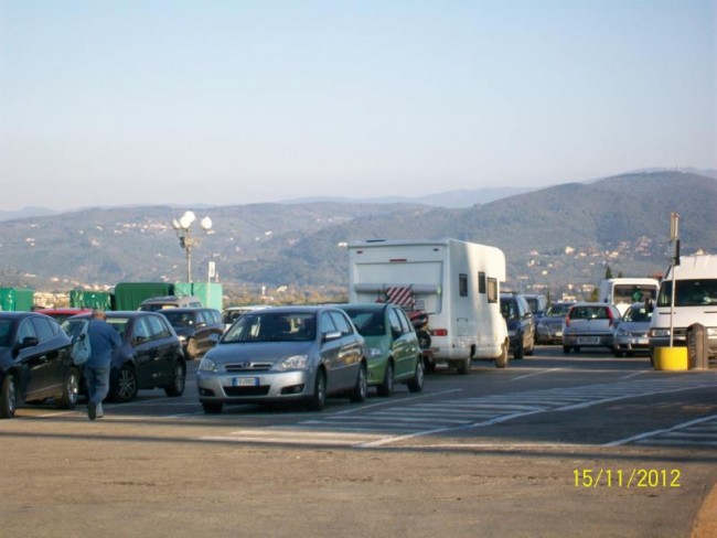Przed nami Florencja.Czytam w przwodniku gdzie zostawic auto,przy dworcu nie ma miejsca,kolo fortu tez nie mozna stac.Wloch kieruje nas na Piaza Angelo.Bladzimy nie skrecilismy na dobrym moscie.Przejechalismy ze 12 km,no jestesmy,sprawdzamy jeszcze kemping na Angelo ale cena 33 euro,jest zawrotnna,bo nie zostajemy tu na nocleg.Jestesmy wreszcie na placu,samochodow ,kamperow,autokarow pelno,parking FREE.