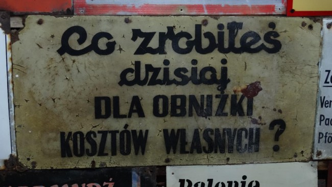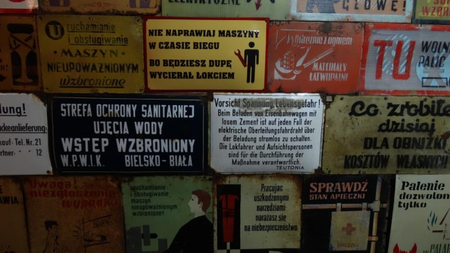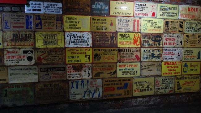 W jednym z chodników dużo starych tablic z zakładów pracy, kto taką tablicę przynosił miał wstęp wolny.