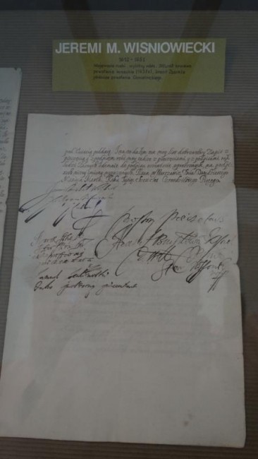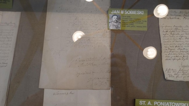 Szczególną uwagę warto poświęcić gablotom, gdzie eksponowane są rękopisy znanych postaci historycznych. Zgromadzono tu listy i inne dokumenty pisane m.in. przez hetmanów Bohdana Chmielnickiego, Jana Karola Chodkiewicza, Stanisława Koniecpolskiego, Stanisława Żółkiewskiego, książąt Jeremiego Wiśniowieckiego i Józefa Poniatowskiego, a także królów Henryka Walezego, Jana III Sobieskiego, Augusta III i Stanisława Augusta Poniatowskiego. Oddzielna gablota zawiera listy naszych wybitnych literatów Adama Mickiewicza, Cypriana Kamila Norwida, Adama Asnyka, Marii Konopnickiej, a także fotografię Elizy Orzeszkowej z jej dedykacją.