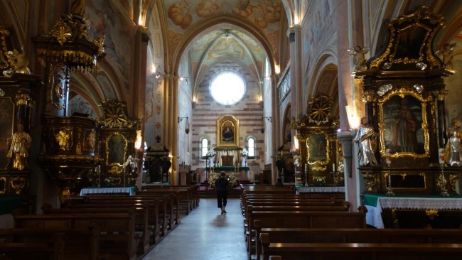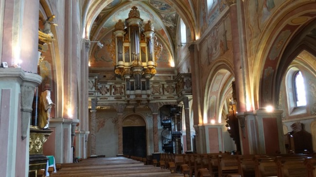 Obecne wnętrze jest w stylu barokowym. Organy pochodzą z przełomu XVI I XVII w.