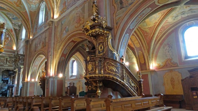 Piękna ambona jest po lewej stronie, a nie po prawej jak pozostałych klasztorach cysterskich. Dlaczego tak jest niestety nie wiedział również nasz przewodnik.
