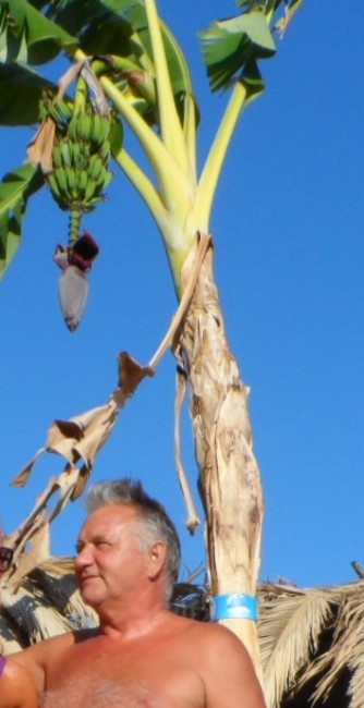 SAM_2810.JPG Na plaży trzeba było uważać, żeby co na głowę nie spadło, dwa lata temu widziałem jak tego bananowca sadzili, był malutki, jak szybko urósł. |